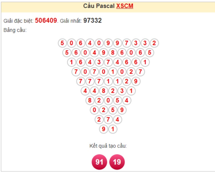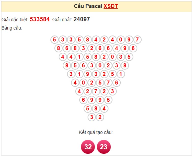 => Kết quả nhận được từ soi cầu Pascale là cặp lô thần tài: 20 - 02