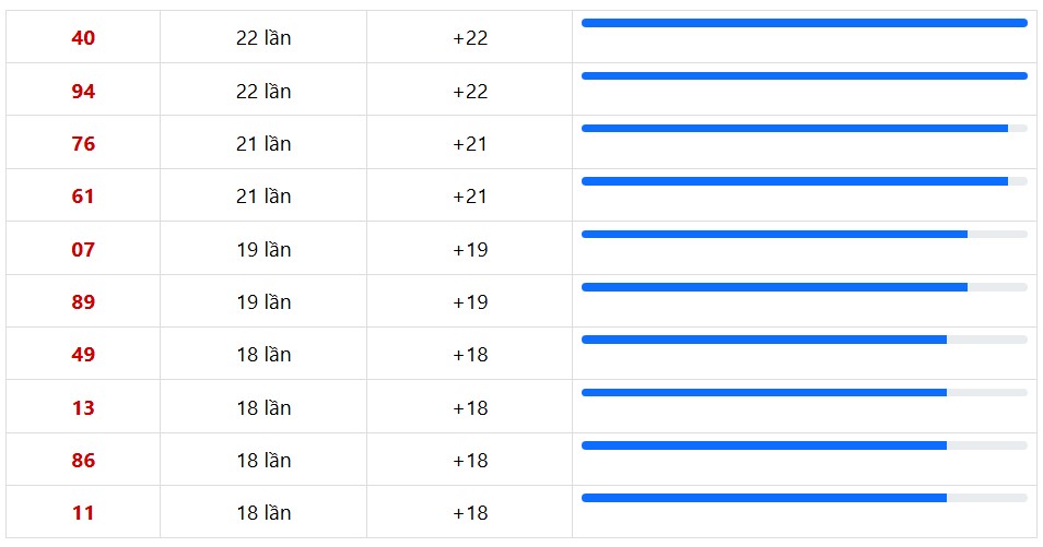 10 cặp số xuất hiện nhiều trong 30 lần quay XSMT